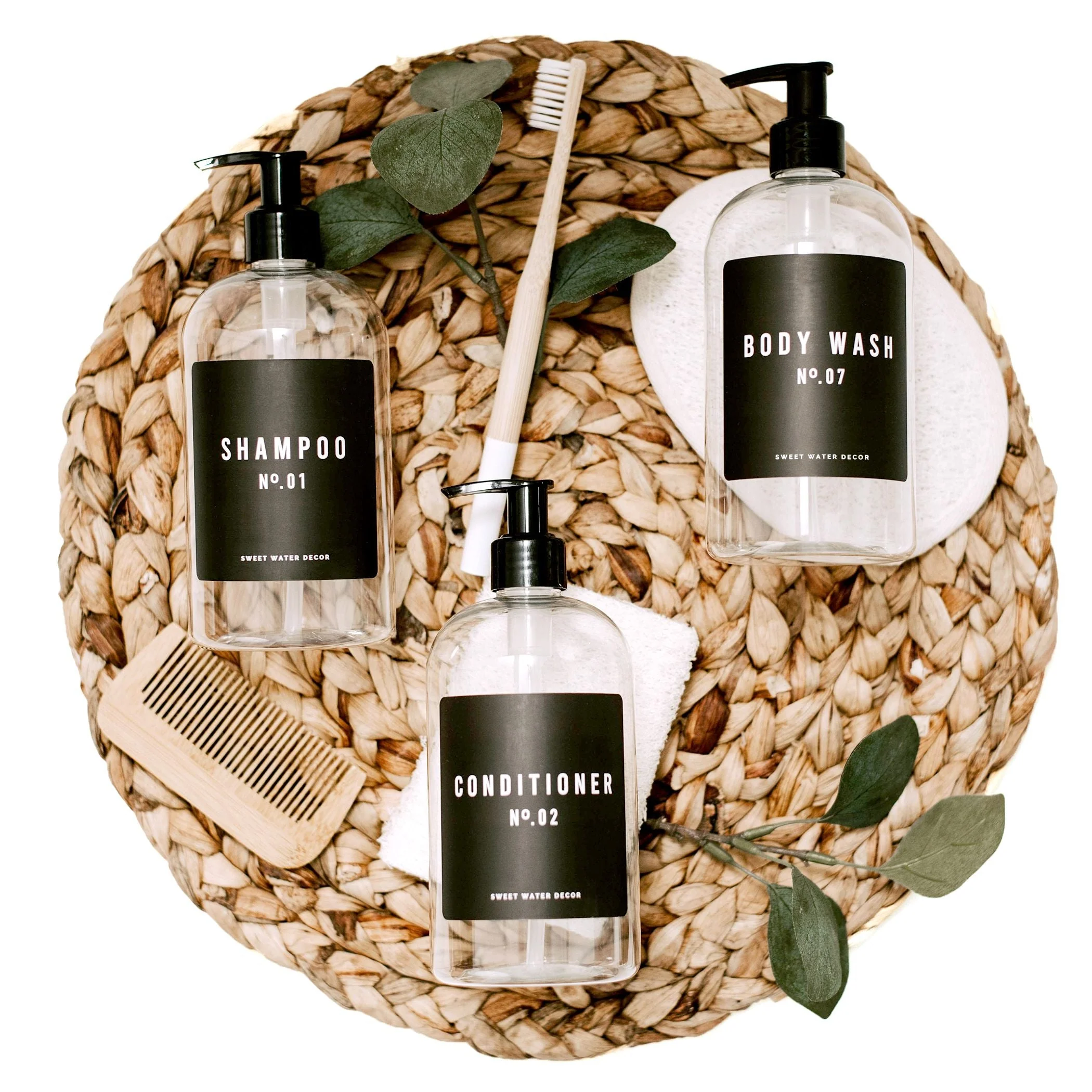 16oz Clear Plastic Bath + Shower Dispenser Set of 3 - Black Label