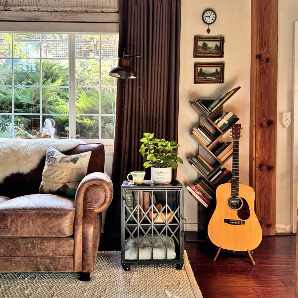 Our Rolling Industrial Accordion Metal Shelf Cabinet is where grit meets grace. Think vintage factory doors reimagined as furniture art. The distressed black metal? It tells stories—of old workshops, of tools and time, of design that earned its character. Then those accordion-style lattice doors… oh yes. They fold, they slide, they perform. Each movement feels like unveiling a secret—functional art at its best.