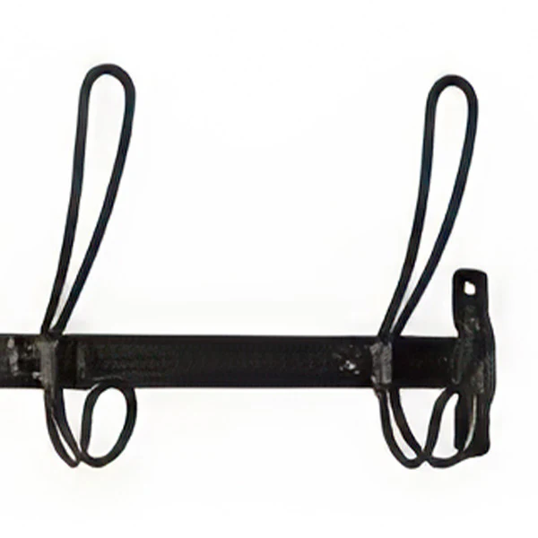 Crafted from solid metal with a dusky black finish, each wire loop hook pulls double duty with upper and lower hangers. That's 10 hanging spots from just 5 hooks. At nearly 28 inches wide, it spans enough wall space to handle the whole family's gear without looking cluttered.