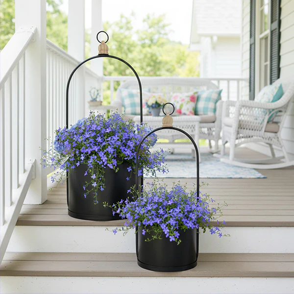 The arched handle design adds architectural interest whether you're displaying them on steps, hanging from shepherd's hooks, or anchoring a seasonal tablescape.